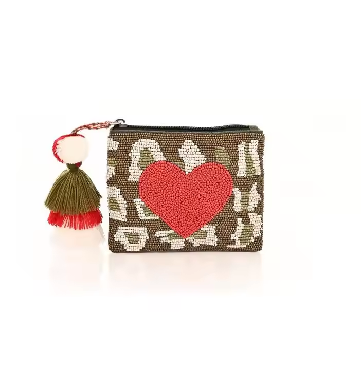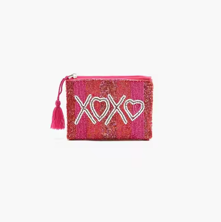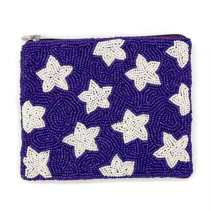 Fashion seed bead embroidery coin purse for girls Ethnic Indian handmade beaded embroidery small pouches