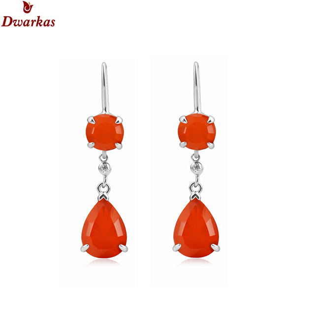 Fashion unique design 925 sterling silver carnelian CZ gemstone prong set drop earring for ladies and girl ready stock earrings