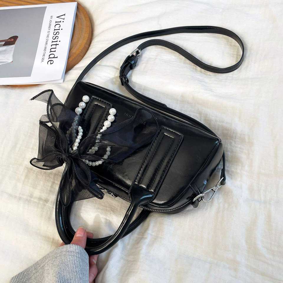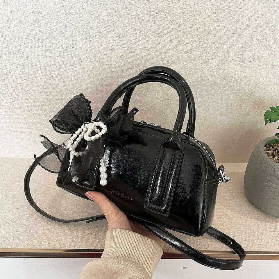Fashion women Y2k shoulder bag Pu leather bead bow underarm handbag tote bag