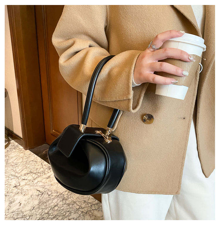 Fashion women's bag solid color simple handbag PU material locked lantern shaped women's bag