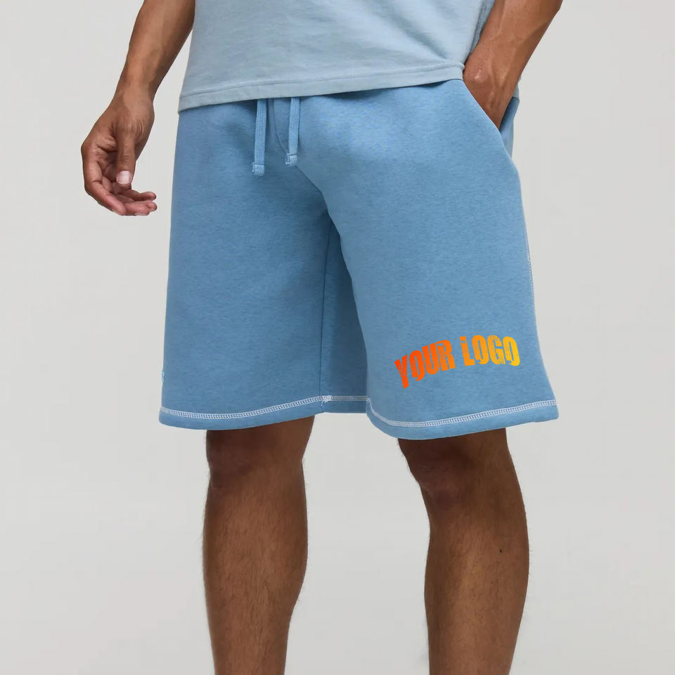Fashionable 100% Cotton Fleece Shorts For Mens Custom 3D Puff Printed Logo Heavyweight 450GSM Without strings mens shorts