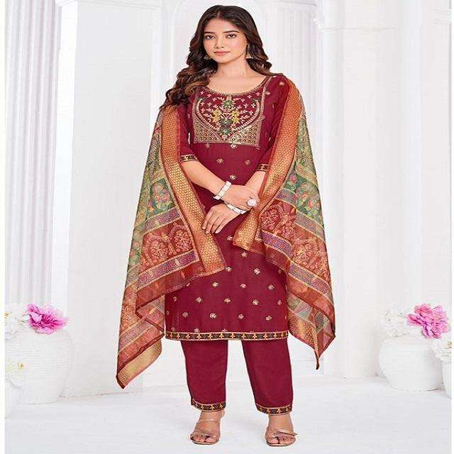 Product Name:Fashionable 14kg Rayon Kurti Pant & Dupatta