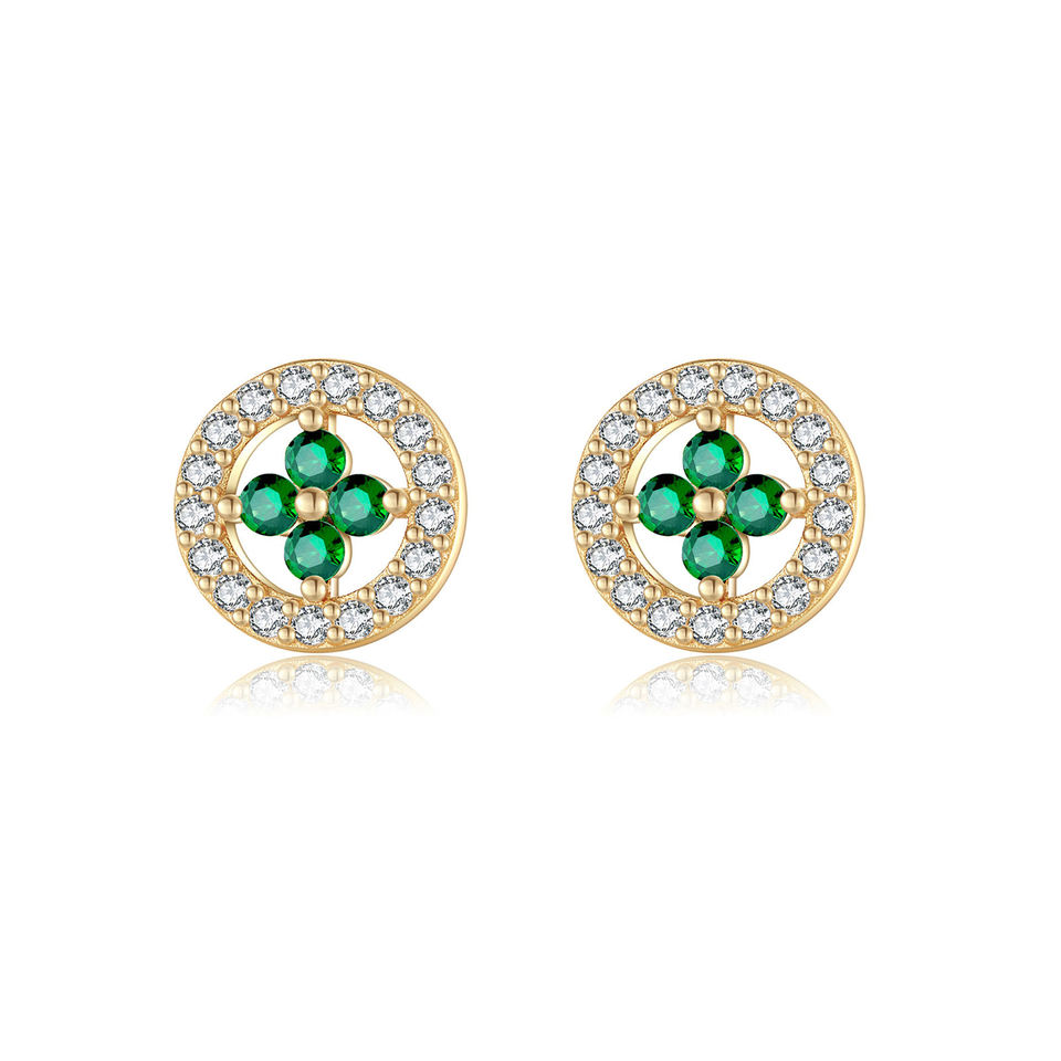 Product Name:10K Solid Gold Emerald Flower Earrings Topaz Stud Earring