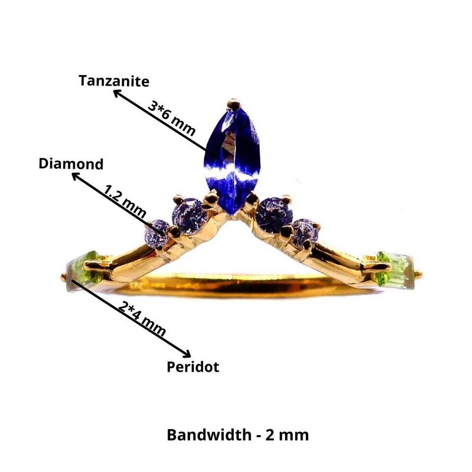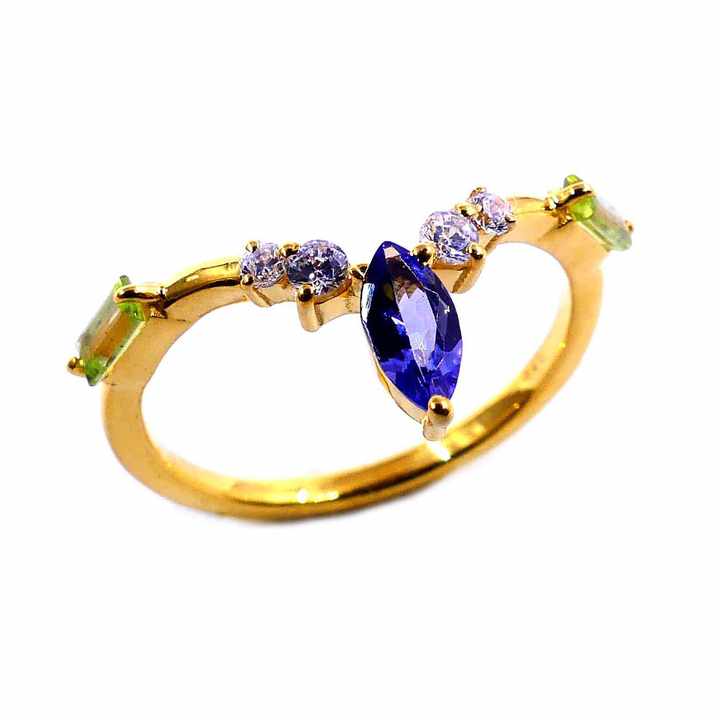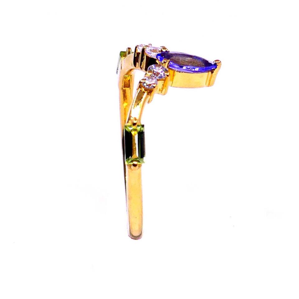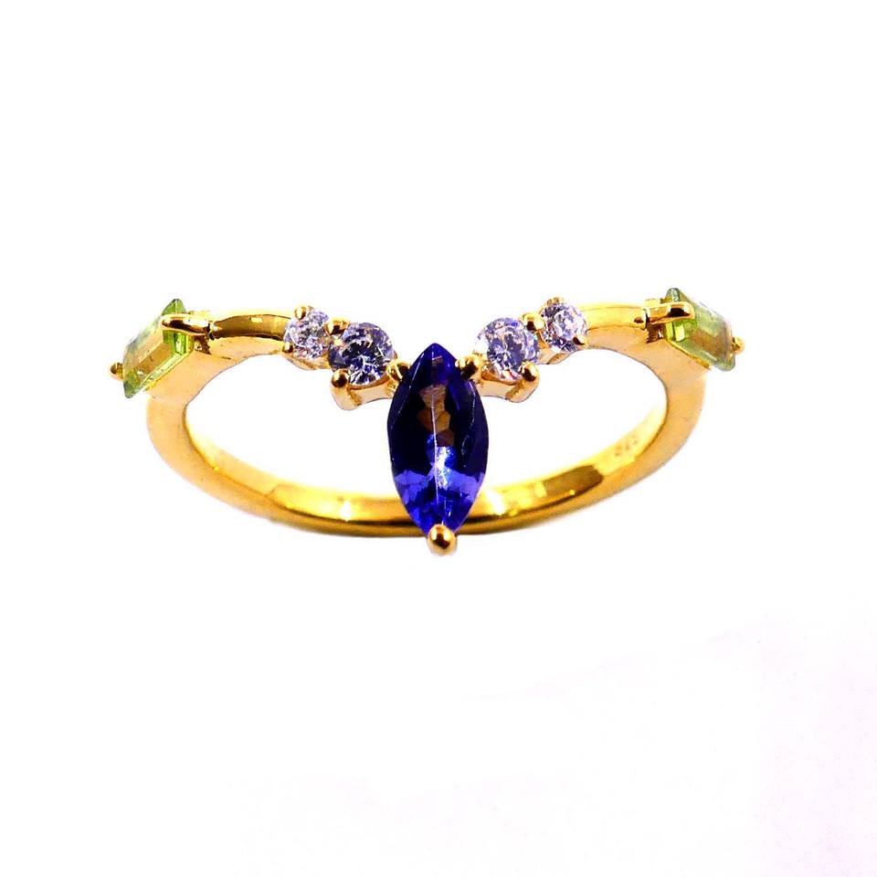 Fashionable 925 Sterling Silver Gold Plated Attractive Tanzanite Peridot Gemstones Fashion Finger Diamond Ring