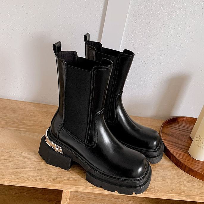 Fashionable And Versatile Mid Calf Skinny Boots For Women In Autumn And Winter With Thick Heels