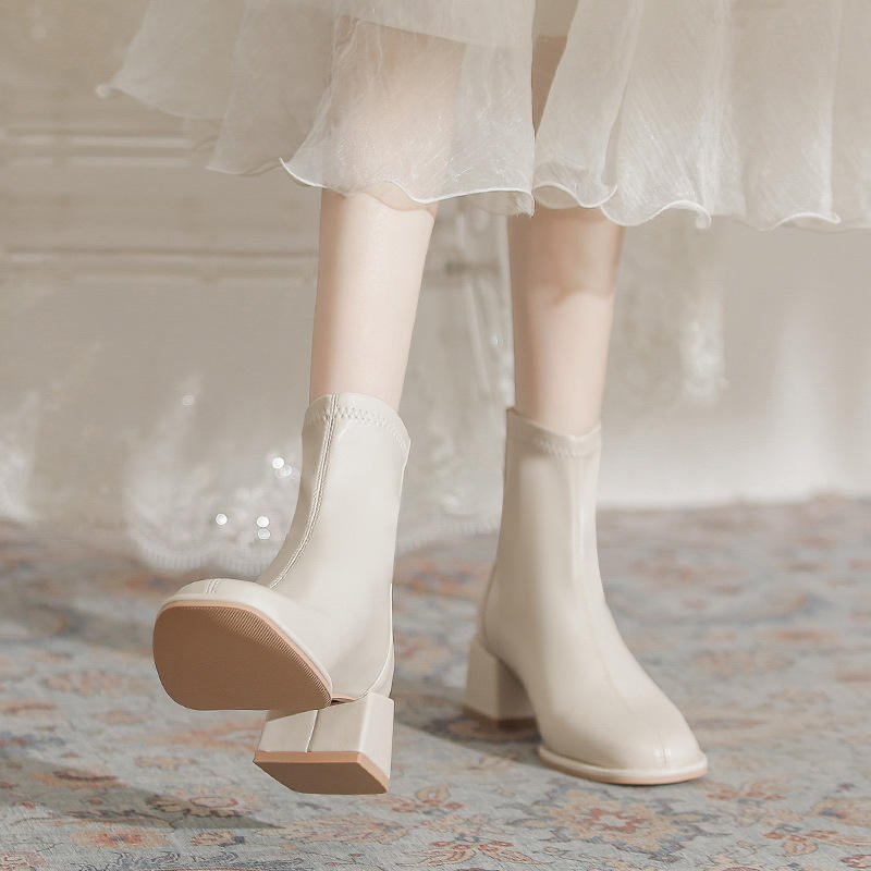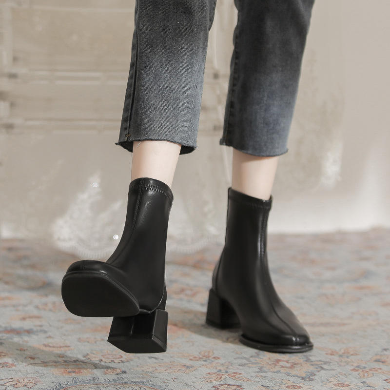 Fashionable And Versatile Mid Calf Skinny Boots For Women In Autumn And Winter With Thick Heels