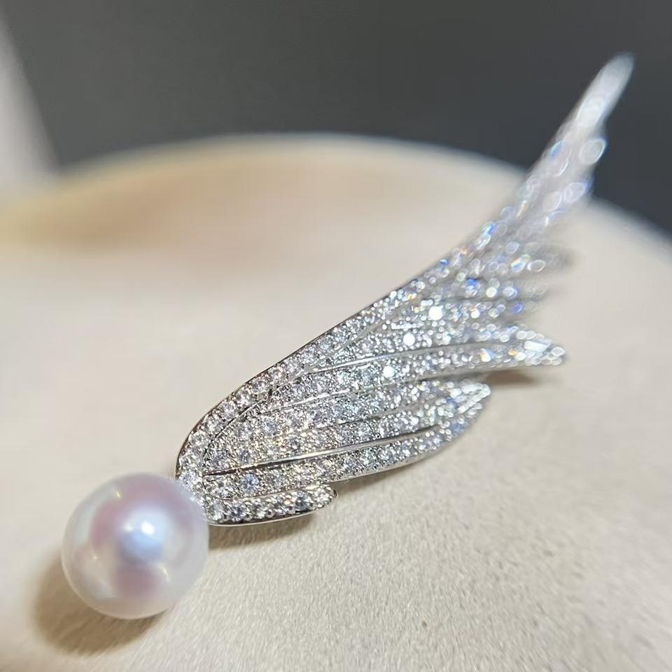 Fashionable Angel Wing Suit Dress Brooch Freshwater Pearl Pin Chest Flower Brooch Popular Wholesale Retail Freshwater Pearl