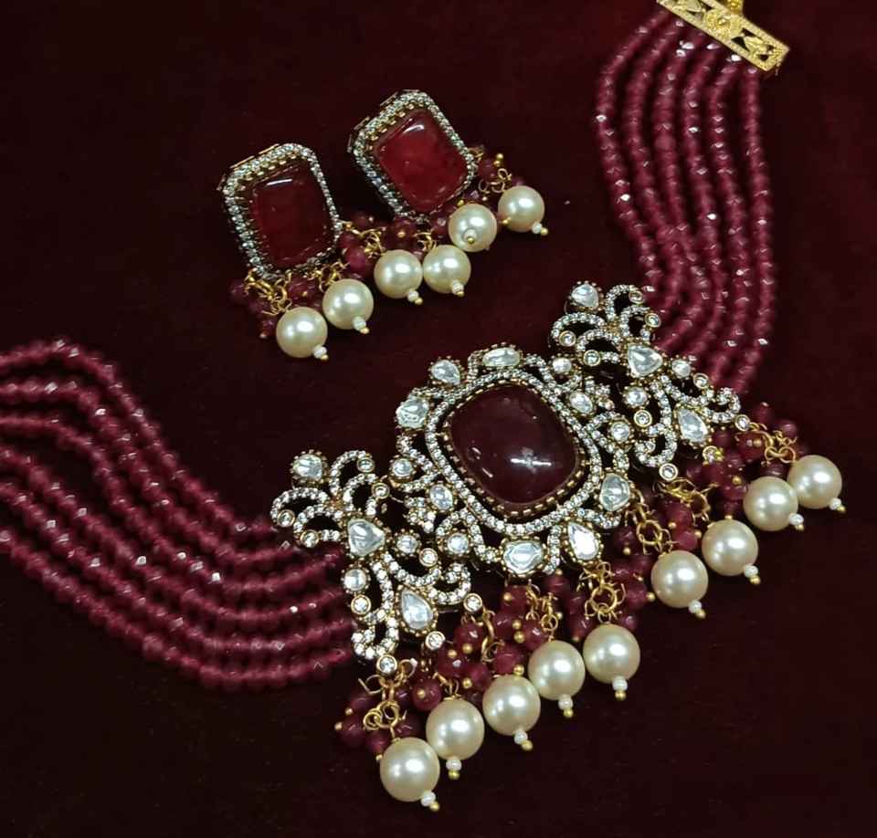 Fashionable Antique Gold Plated Polki Kundan Choker Set Earrings Stylish Brass Jewellery for Party Wedding Anniversary