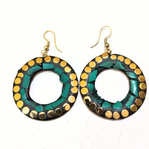 Fashionable Brass Mosaic Earrings Bohemian Religious Arrow Jewelry with Inlaid Design for Parties Engagement Wedding-22092020-81
