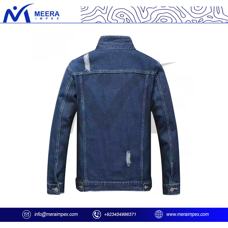 Fashionable Button Style Solid Blue Color Denim Jacket High Quality Breathable Fabric Plus Size Distressed Denim Jacket For Men