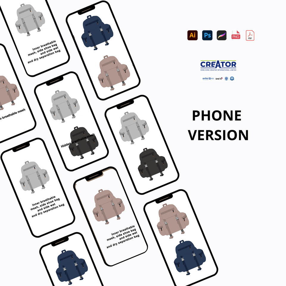 Product name:Vector Mockup Custom Tennis Bag Technical Drawing