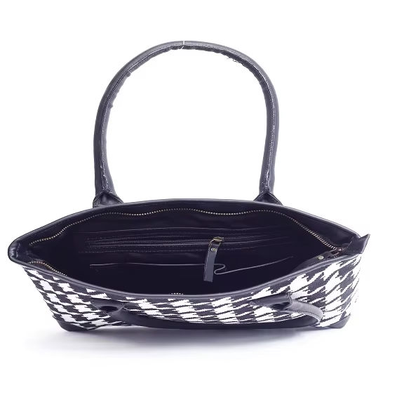 Fashionable Canvas Tote Bag with Leather Handles Black and White Design Large Capacity Handbag for Women with Zipper