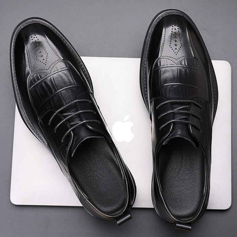 Fashionable Casual Breathable Men's Genuine Leather Lace-Up Waterproof Arch Support Business Antiskid Dress Shoes Trend Style