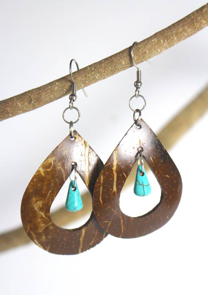 Fashionable Coconut Earrings Handicraft Jewelry Handmade Coconut Shell Earring Boho Style Jewelry Unique Coconut Handicraft