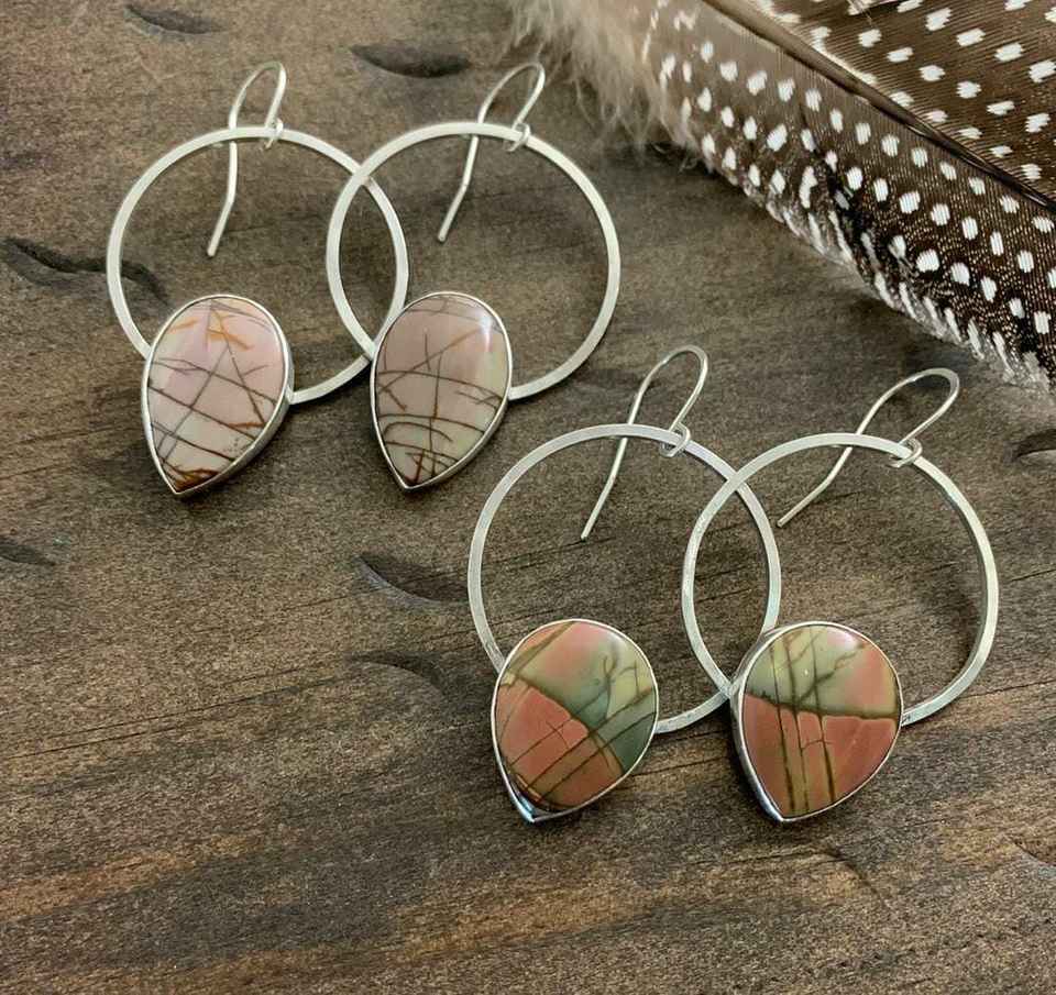 Keyword:Jasper Natural Gemstone Earring Silver Statement Jewelry