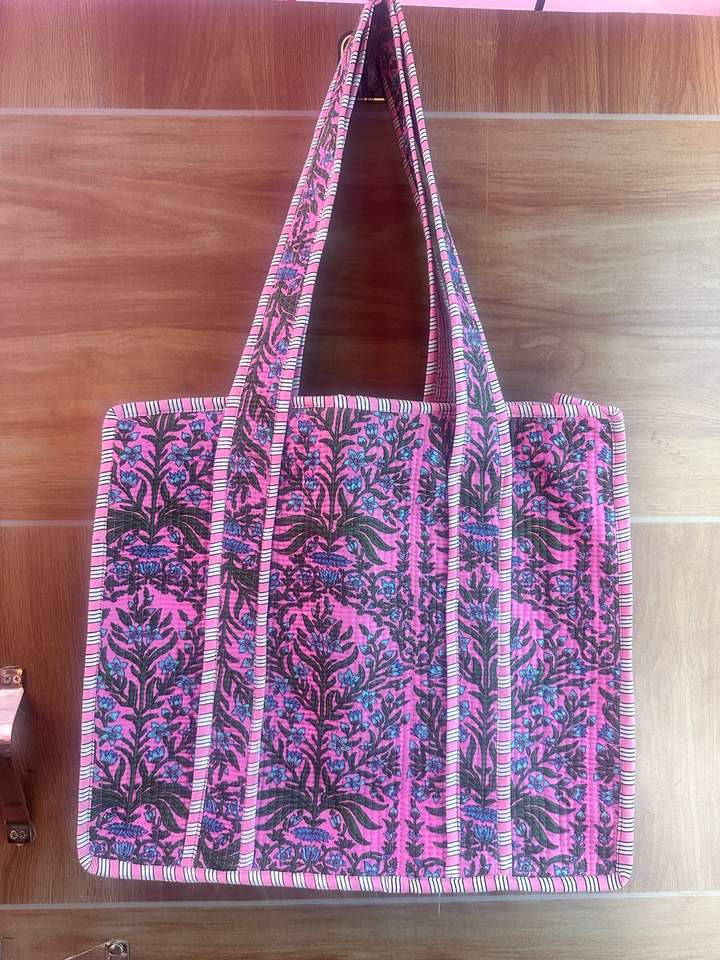 Fashionable Custom Travelling Small Tote Bags for Women Shopping Hand Block Printed Shoulder Purse Quilted Designer Bag