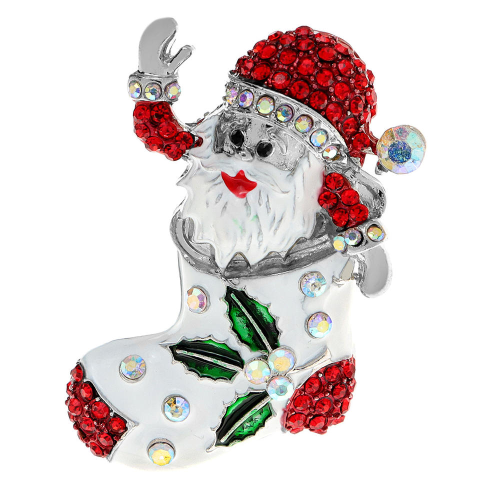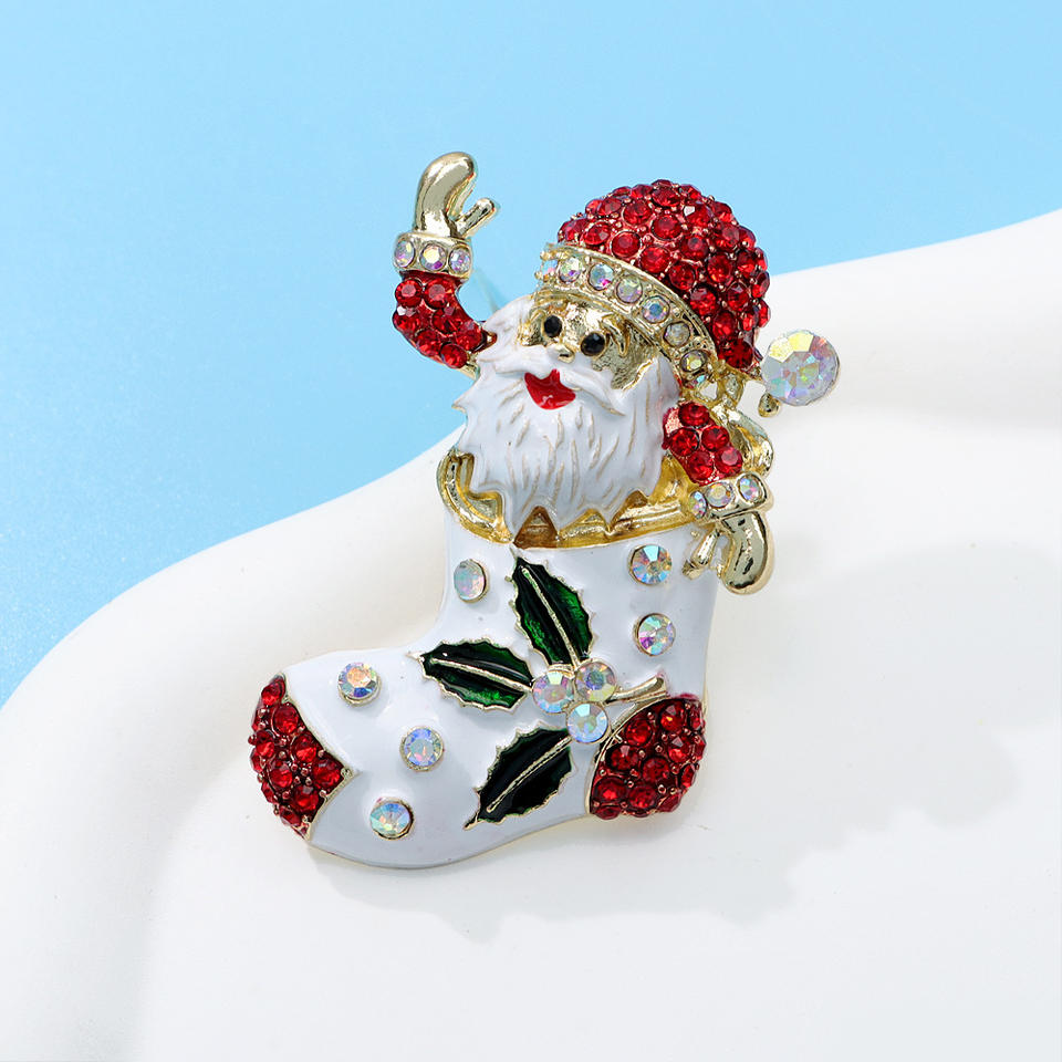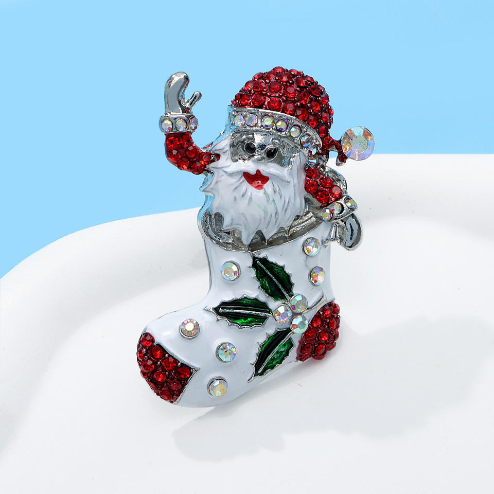 Fashionable Cute Rhinestones Santa Claus Christmas Festival Gift Sock-shaped Brooch for Clothing Accessories
