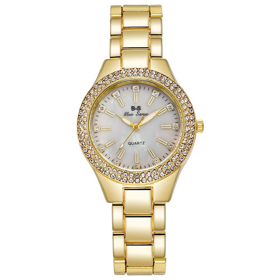 Fashionable Diamond-Encrusted Ladies' Sport Watch with Alarm Digital Movement Gold and Steel Strap Student Edition
