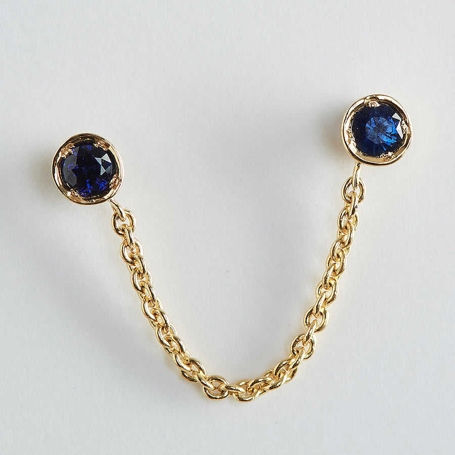 Fashionable Double Piercing Drop-Chain Round Cut Bezel Setting Natural Sapphire Gemstone Earrings Wedding Jewelry For Women