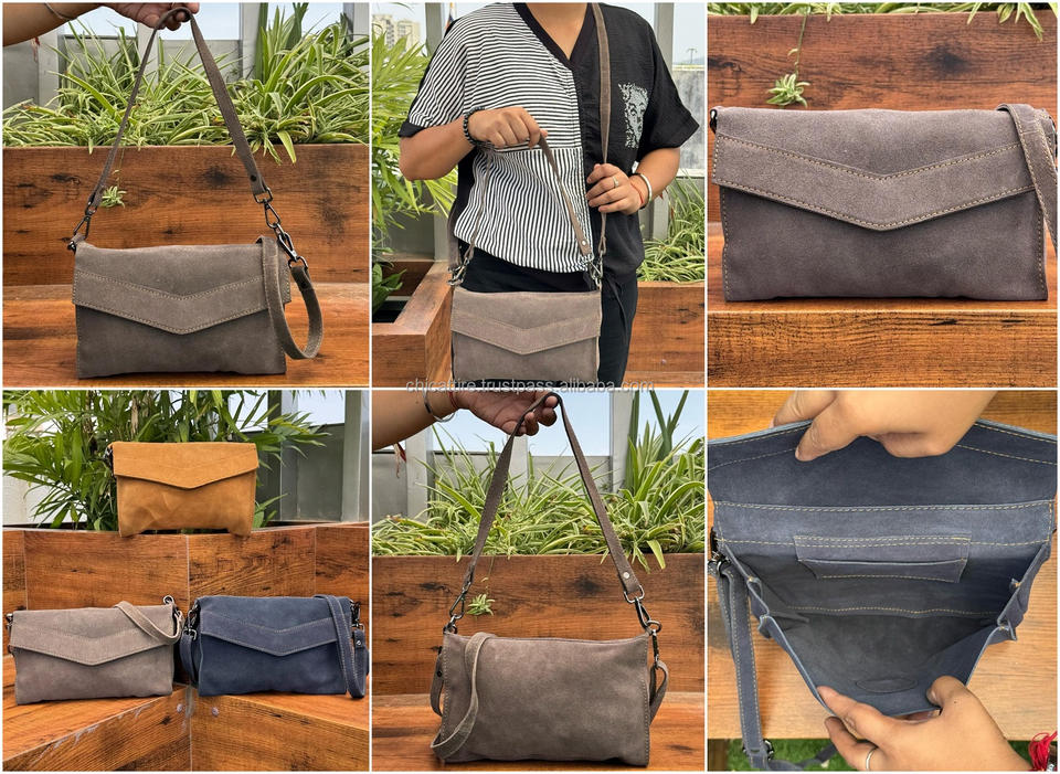 Fashionable Envelope Style Genuine Suede Leather Crossbody Handbag Satchel Bag for Women Hidden Underarm Shoulder Messenger Bags