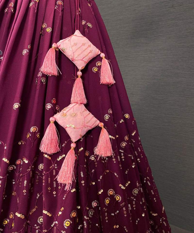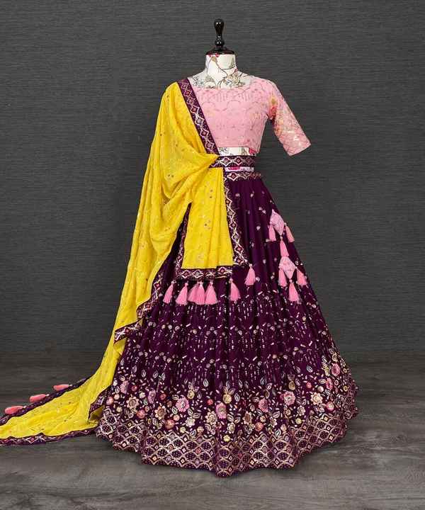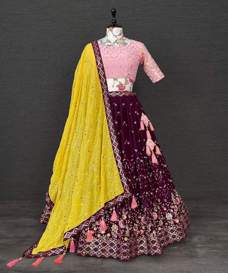 Fashionable Fancy Heavy Embroidery Work Velvet Fabric Stitched Lehenga Choli With Most Picked Lace Border Dupatta for Ladies Apparel