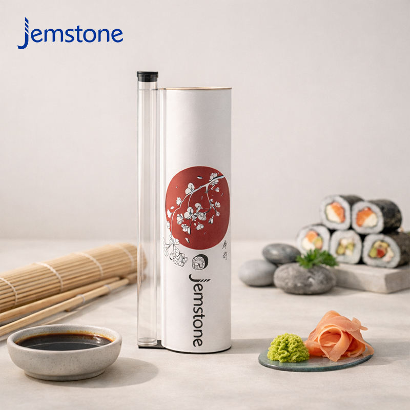 Fashionable Food-grade Take-away Sushi Roll Paper Tube Eco Push pop Sushi Cardboard Cylinder Box Packaging with Sauce Bottle