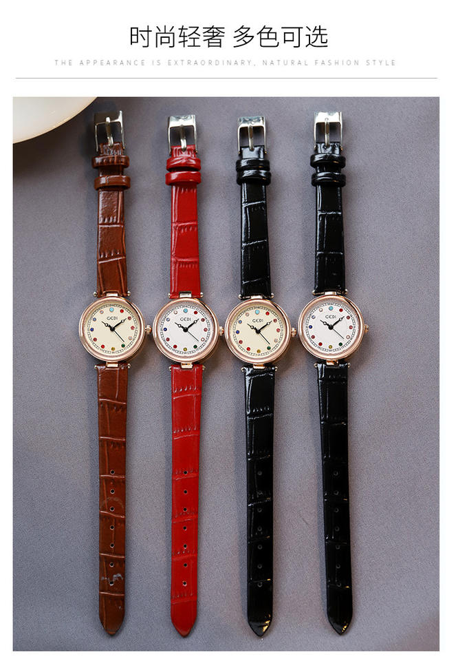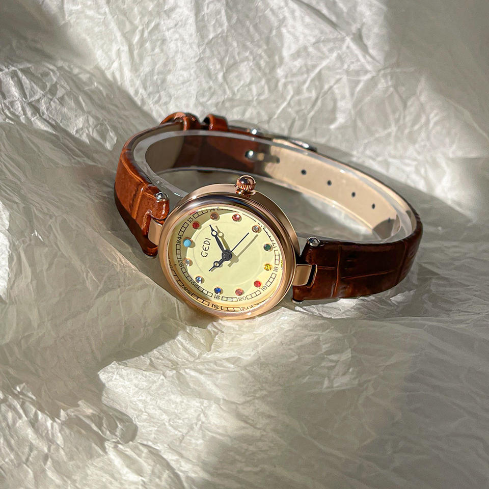 Fashionable French Vintage Style Ladies' Wristwatch with a Small Square Quartz Crystal and Colorful Diamond Dial