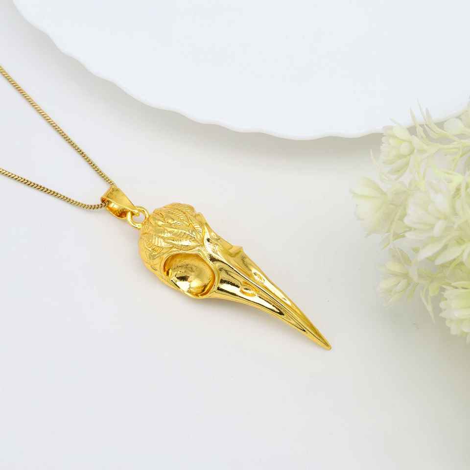 Fashionable Gold Plated Bird Head Skull Rope Chain Necklace Viking Skull Raven Crow Pendant Punk Hip Hop Animal Jewelry for Men