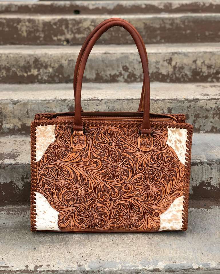 Fashionable Hand Tooled 100% Genuine Leather Vintage Lightweight Bohemian Shoulder Tote Bag Stylish Office Work Women's