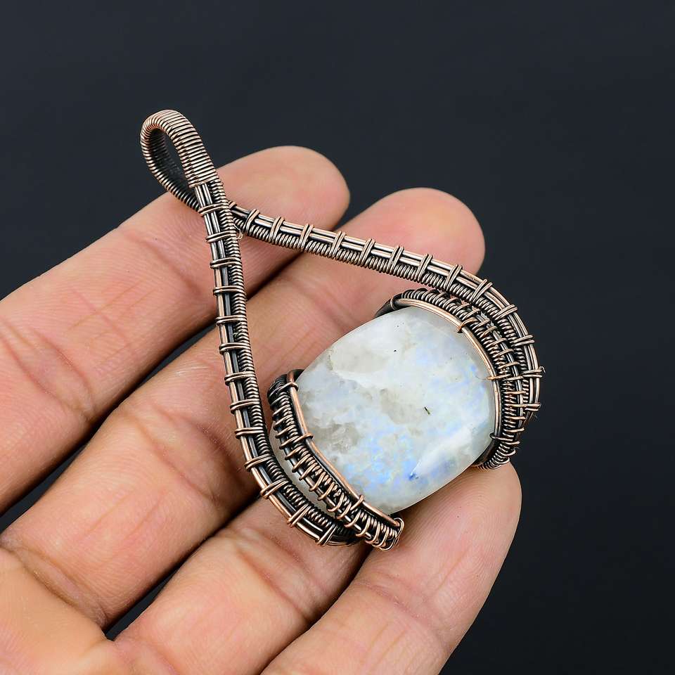 Fashionable Handmade Copper Wire Wrapped Moonstone Pendant Tree Life Design Classic Sterling Silver Plated Brass Charms Gift