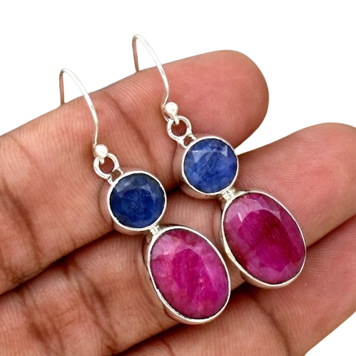 Fashionable Handmade Indian Ruby Earrings for Women 925 Solid Sterling Silver Gold Plated Dangle Jewelry Stamp Gifts