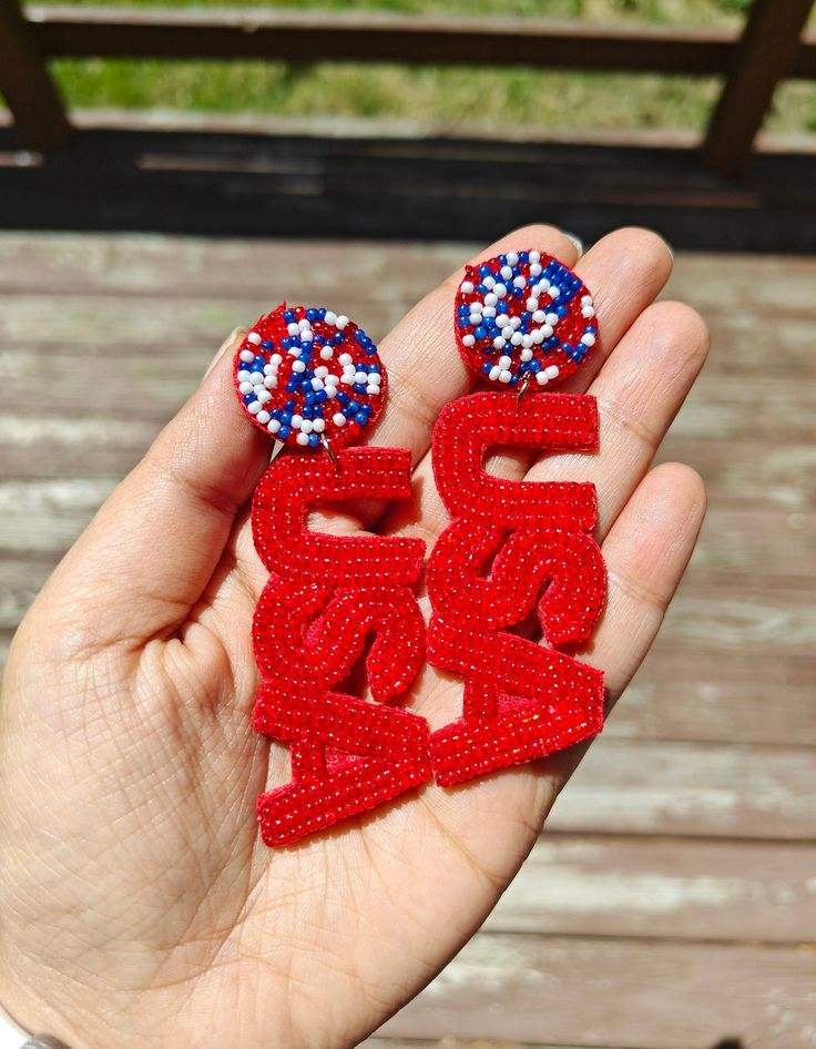 Fashionable Handwork Embroidery Red Beaded USA Dangle Drop Earring Add New Cuteness High Quality Unique Elegant Cute For Girl