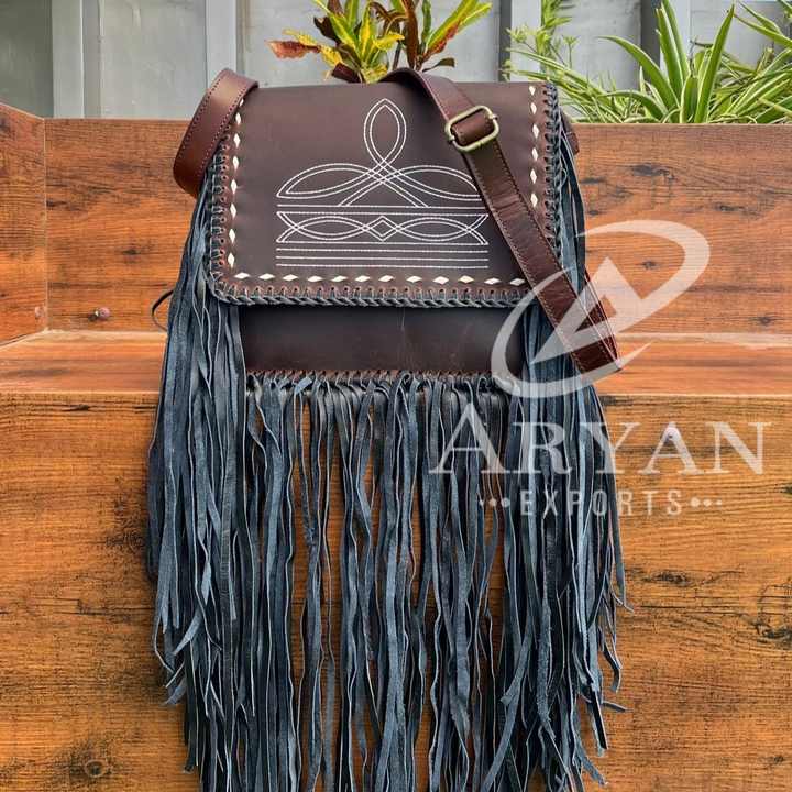 Fashionable High Quality Durable Boot Stitch Genuine Leather Large Fringe Crossbody Bag Western Bohemian Cowhide Women's Handbag