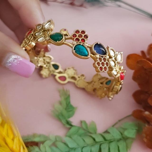 Fashionable High Quality Gold Finish Stones Look Bracelet for Modern Traditional Functions Wear Bracelet for Women