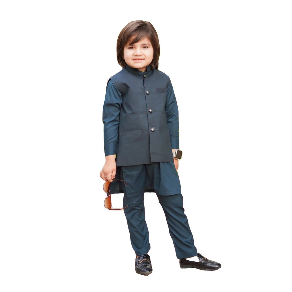 Fashionable Long Cotton Kids Shalwar Kameez Waistcoat Boys Pakistani Indian Traditional Eid Wedding Party Outfit Children
