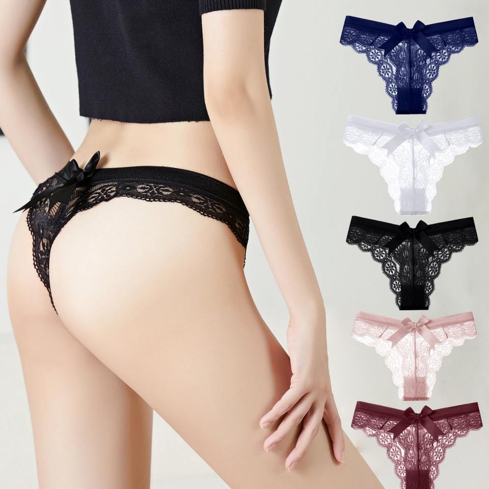 Fashionable Ladies' Breathable Seamless Lace Panties Bow Hollow Casual Night Dress Embroidery Fabric Washed Sexy Underwear