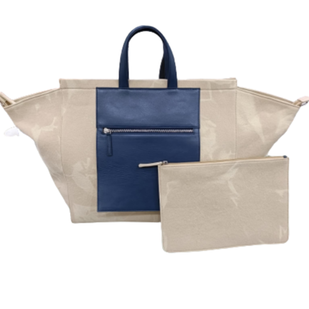 Fashionable Ladies' Eco-friendly Tote Bag Vintage Marble Wash Canvas Embroidery Beaded Two Leather Handles Zipper Closure