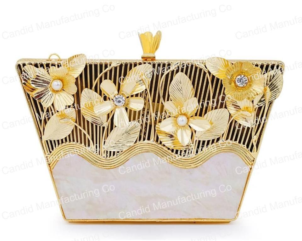 Fashionable Ladies Party Leather Clutch Shoulder Bag Mother of Pearl & Stone Embroidery Hanging Design Dress Style