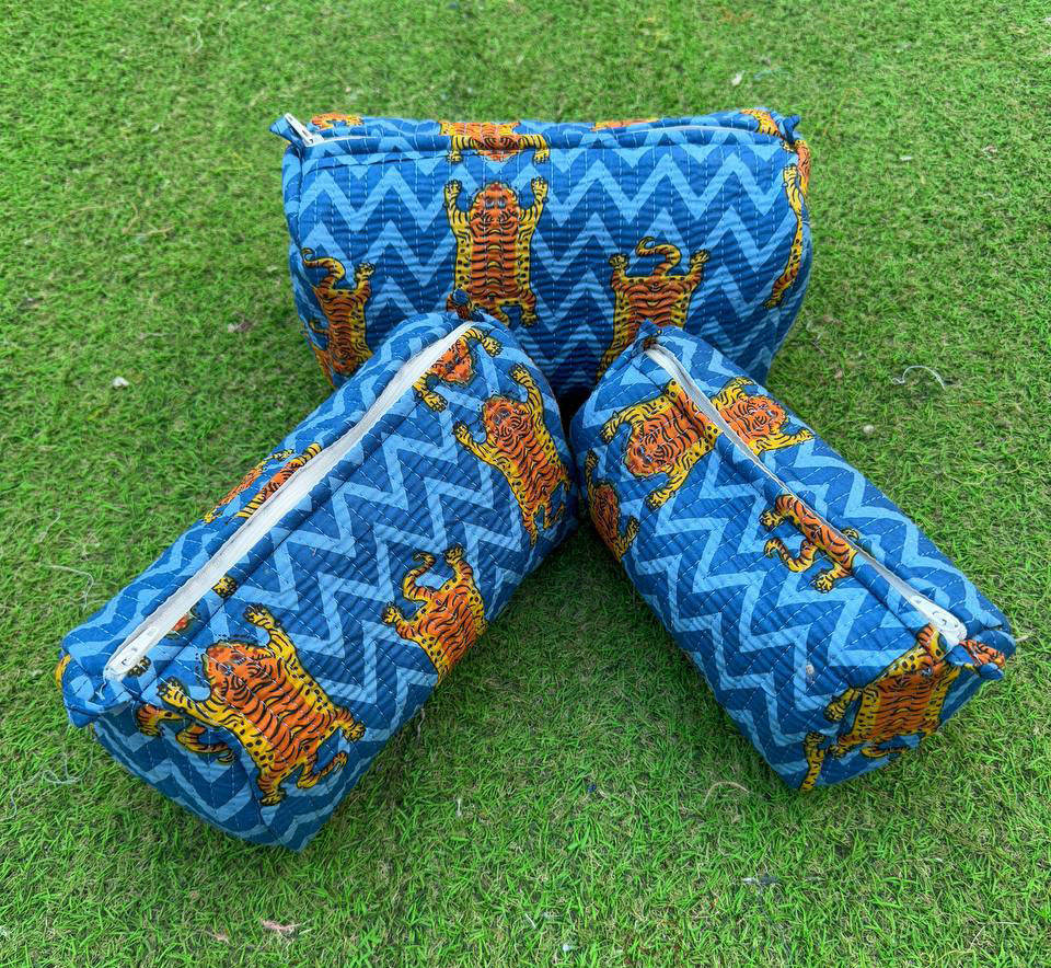 Fashionable Large for Toiletry Bag Waterproof Cotton Wash Bag with Zipper Closure Block Printed Makeup Cosmetic Bag