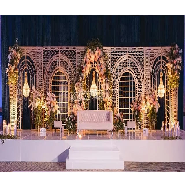 Fashionable Laser Cut Wedding Stage Metal Arches Wedding Backdrop Metal Frames for Decor Unique Haldi Background Frames Decor