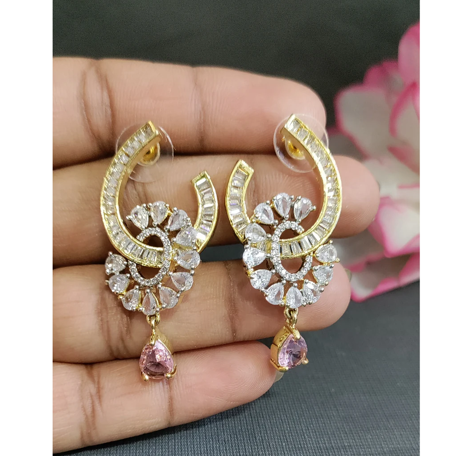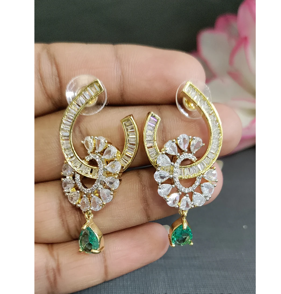 Fashionable Long Two Tone Earrings For Girls With Intricate Stone Setting Great For Party Looks From India