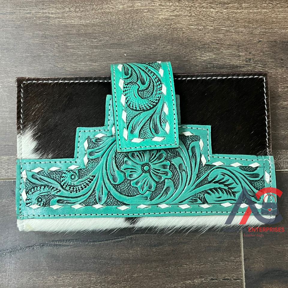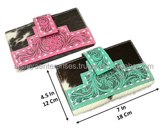 Fashionable Manufacturers Hand Tooled Cowhide Leather Long Bifold Wallets Western Style Purse for Women Card Money Holder Clutch