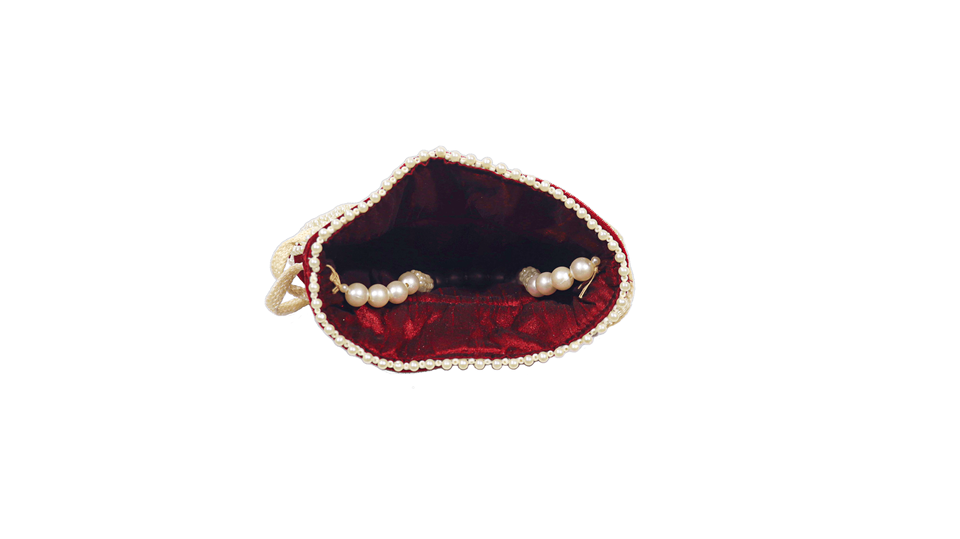 Fashionable Maroon Women's Potli Bag with Satin Lining and Pearl Decoration High Quality Magnetic Closure Wedding Party Gift
