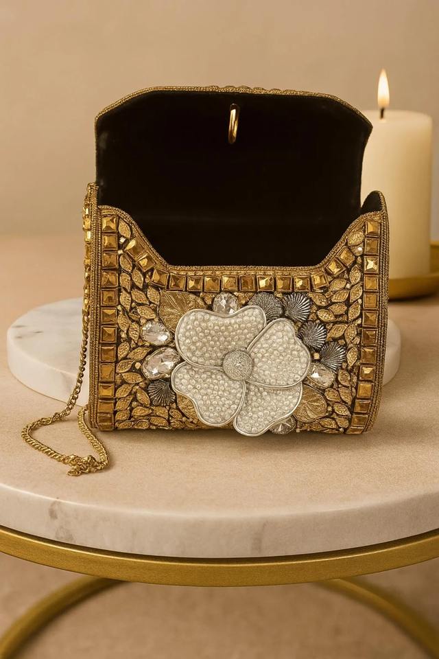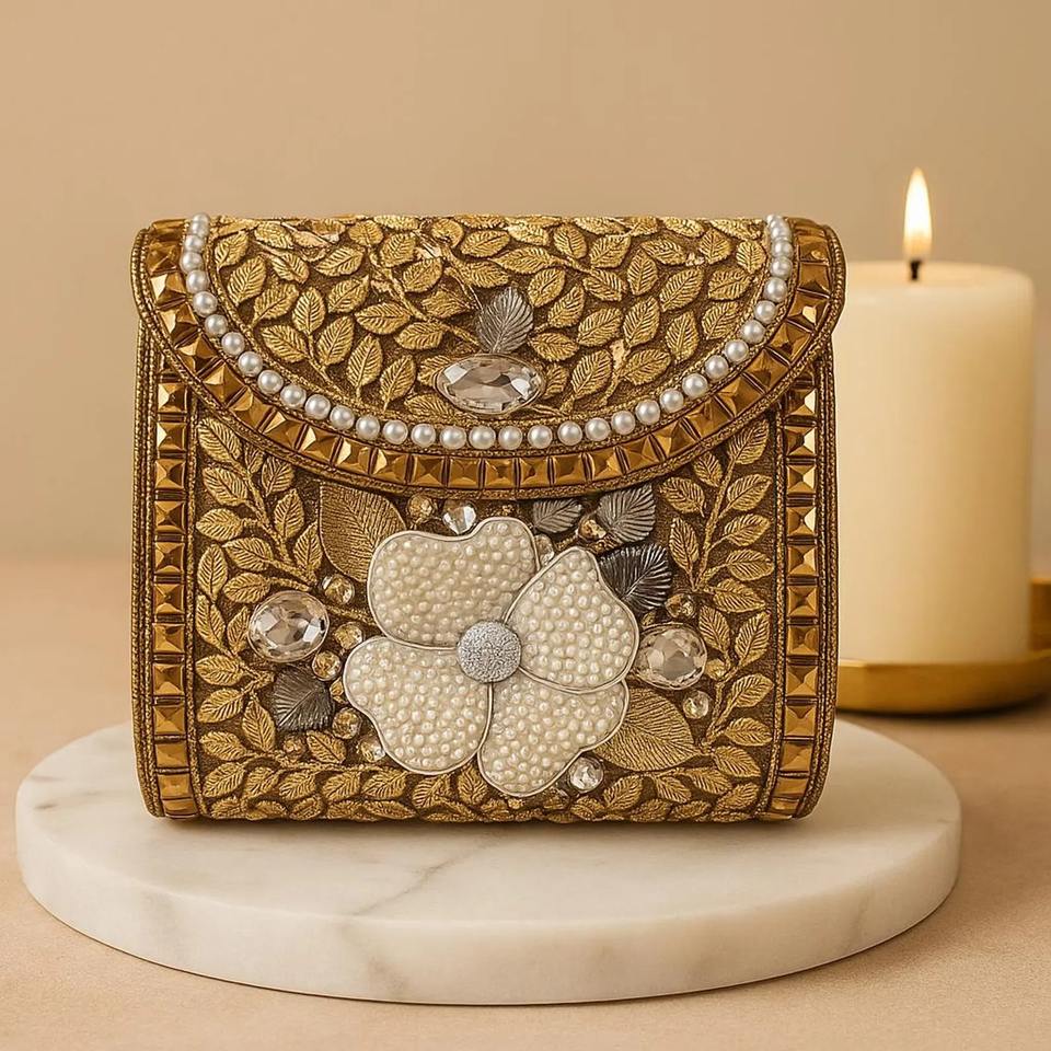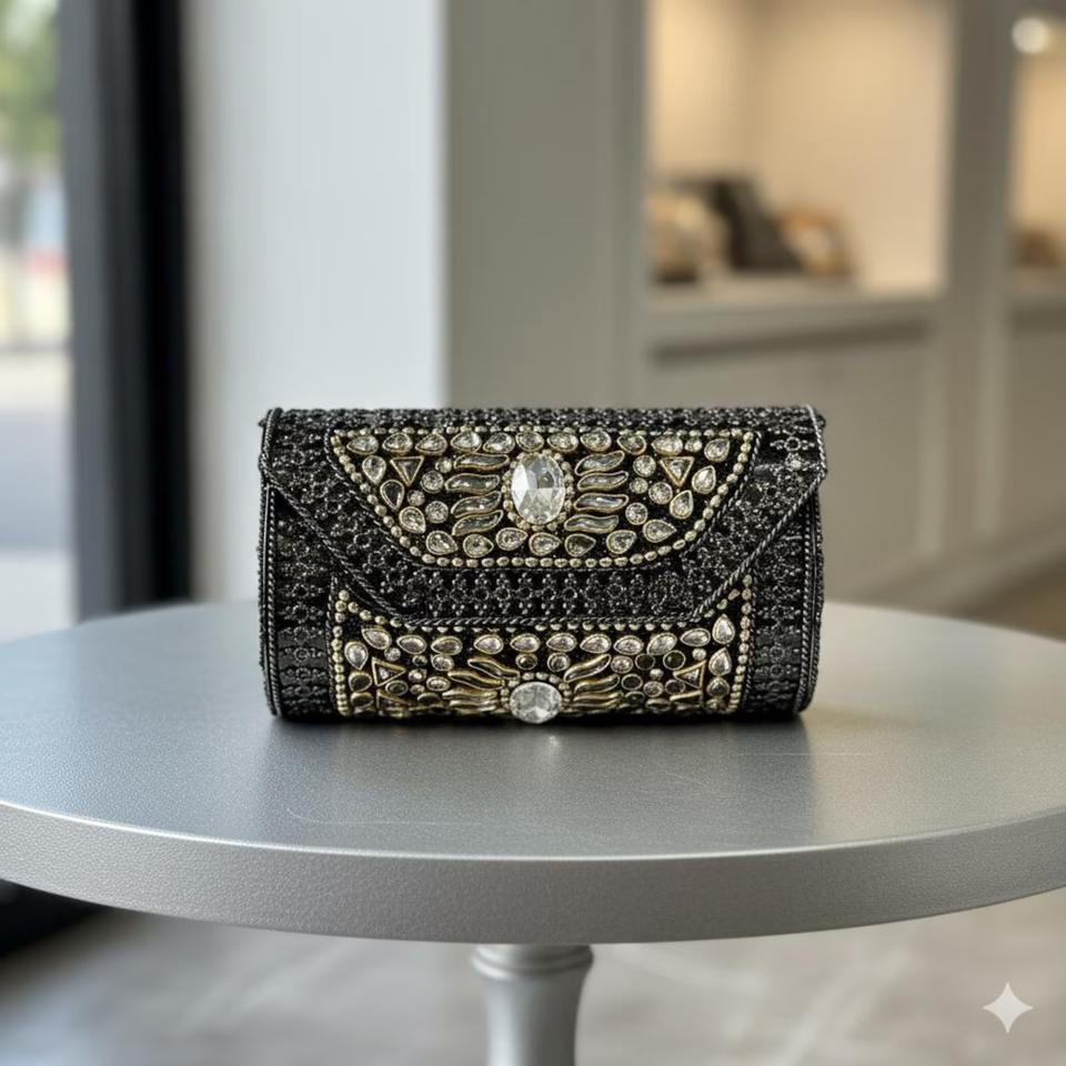 Fashionable Mosaic Evening Clutch with Artistic Pattern Detailing Handmade Mosaic Bridal Clutch Bag with Decorative Metal Frame