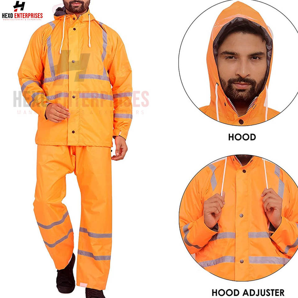 Fashionable Orange High Visibility Rain Jacket Custom Manufactured New Style Raincoats for Travel and Hiking