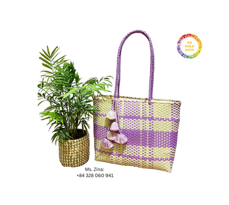 Fashionable Plastic Rattan Bag for Women Lightweight Knitted Basket for Shopping Recyclable and Stylish Market Tote Design
