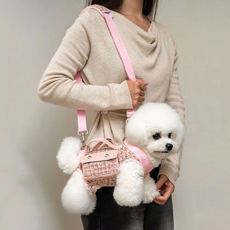 Fashionable Luxury Portable Single Shoulder Pet Backpack Plaid Pattern Large Capacity Handbag for Small Dogs Breeds for Outdoor