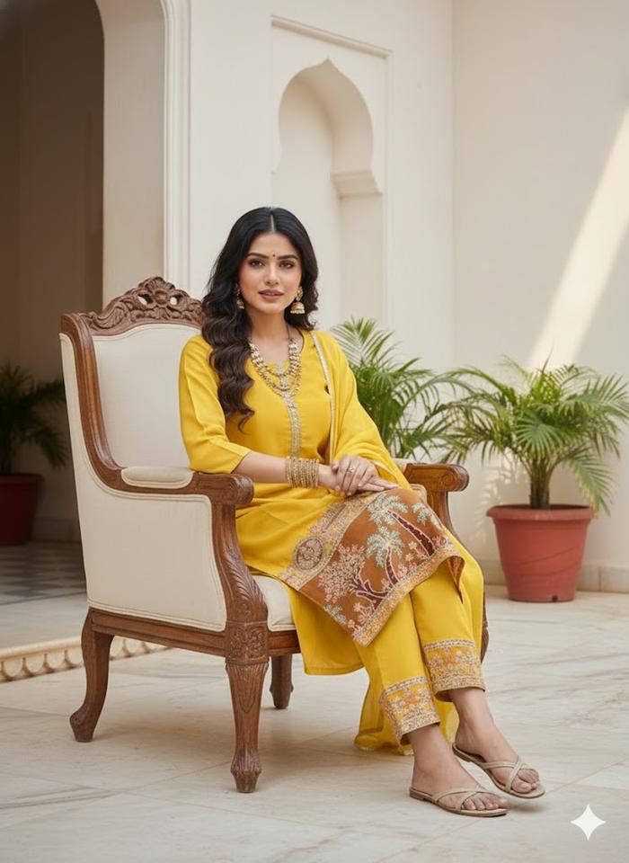 Fashionable Women's Cotton Modern Three Piece Suits with Chinnon Dupatta and Payal Work Party Wear Roman Embroidery Kingsa