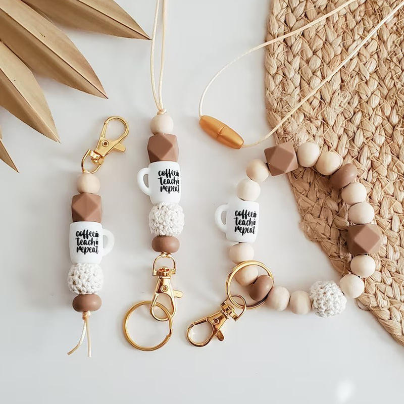 Fashionable Simple & Cute Silicone Bead Bracelet Creative DIY Coffee Cup Keychain Pendant Bag Pendant Jewelry