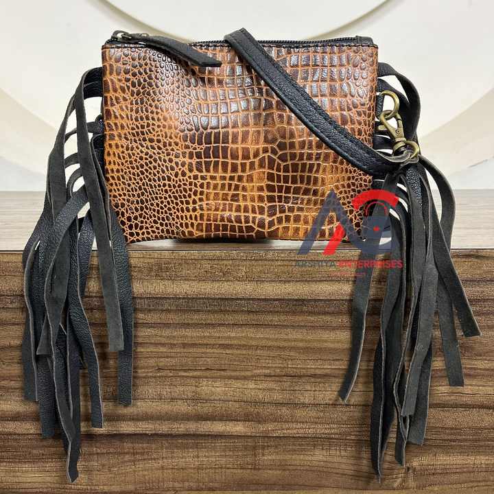 Product Name:Genuine Leather Crocodile Designer Sling Fringe Bag